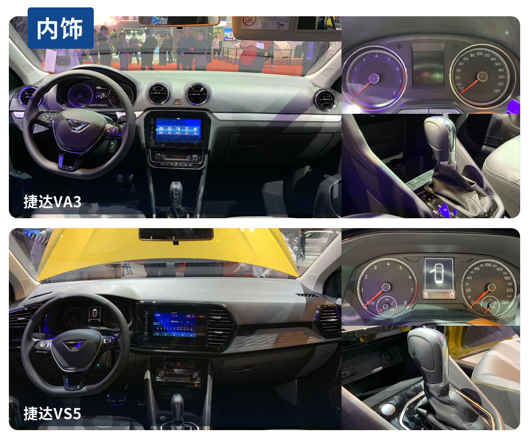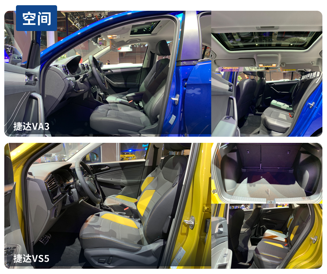或许是定位比较亲民的原因,不管是VA3还是VS5,受限于成本两车的用料方面依旧比较一般,中控台都是硬塑料。好在有烤漆面板或者银色饰板等做点缀,弥补了太素的视觉感受。而后排则延续了大众车比较不错的空间表现,座椅柔软度适中。但VA3跟VS5后排中央隆起略高,一定程度上会影响到中间乘客的舒适性。