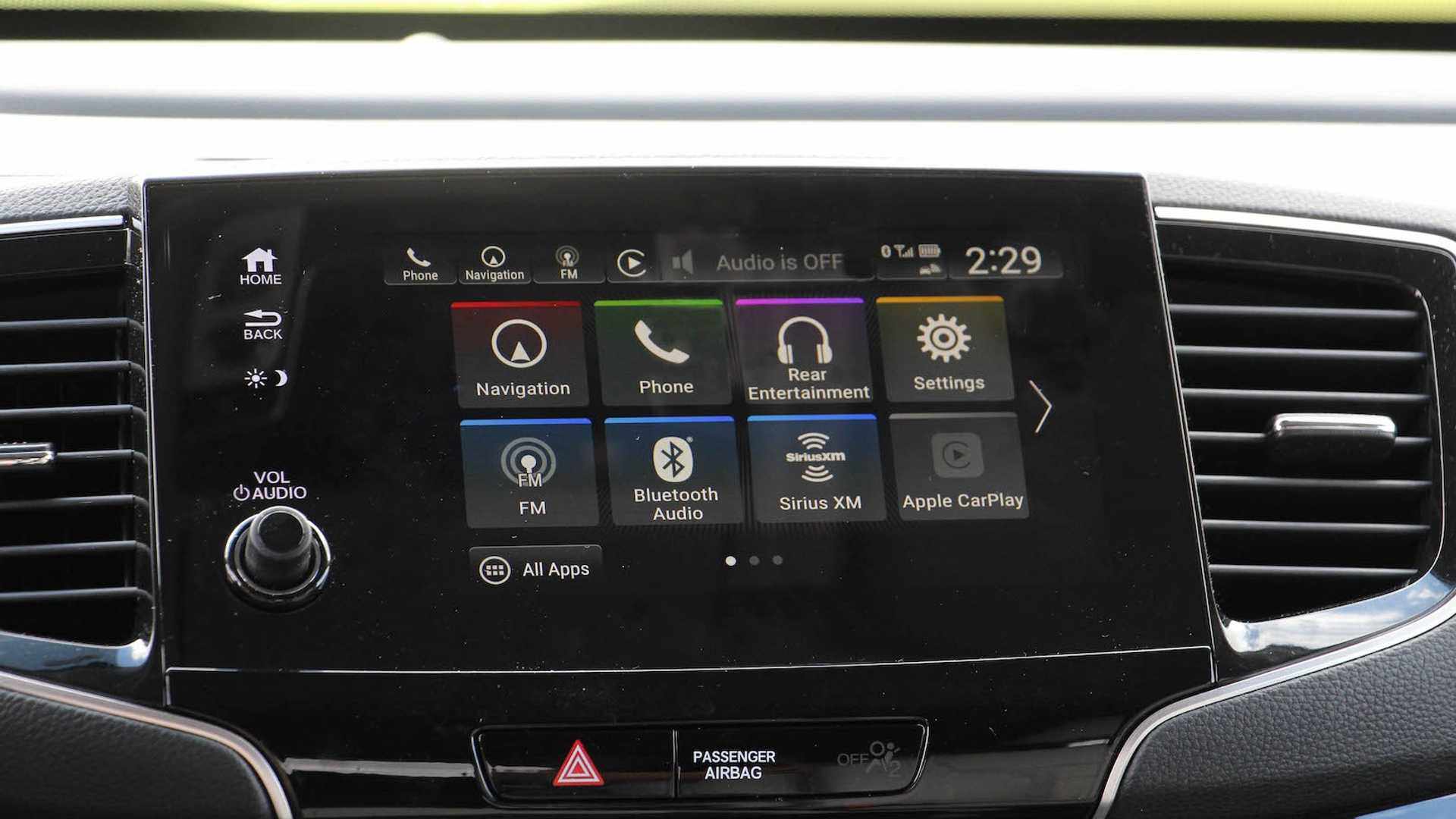 与Traverse一样,Pilot全系标配带导航功能的8英寸触摸屏,值得令人点赞的是,本田取消了笨重的触摸电容音量滑块,取而代之是新的音量旋钮。主菜单由方形应用程序组成,可轻松在触摸屏上重新定义。苹果CarPlay和Android Auto也是标准配置,并提供无线充电等额外功能。