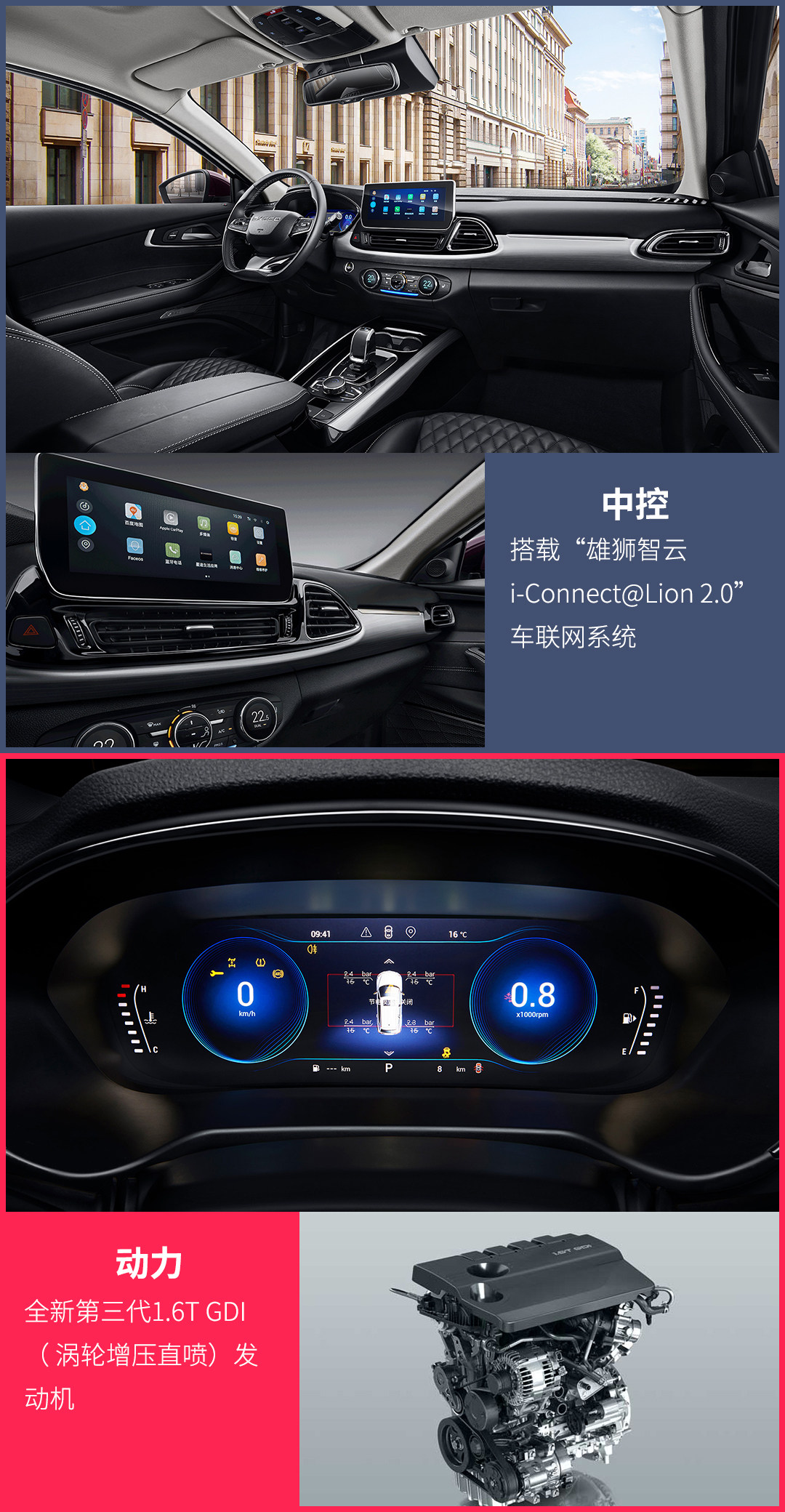 内饰采用对称式设计,大尺寸的悬浮中屏、液晶仪表盘与电子档把,奠定了车内的科技氛围,也营造出不错的豪华感。1.6T+7DCT的动力组合可能会有人觉得看起来有点小气,但这款1.6T发动机可谓是国产最强1.6T,数据不输国产其他品牌的2.0T发动机。
