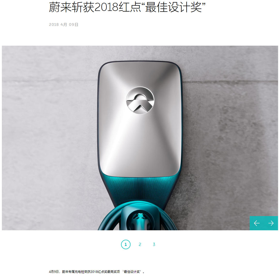 在中国品牌走向高端化的过程中,越来越多厂家认识到设计的重要性。长城聘请了原宝马设设计师皮埃尔来担任WEY的设计总监。蔚来对设计更加注重,不仅汽车外观和内饰设计,连充电桩也斩获了红点设计奖。