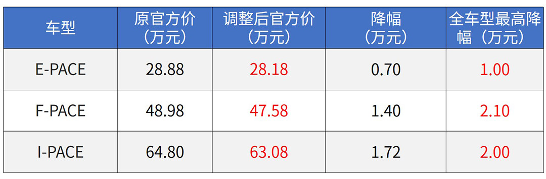 而就在此前,捷豹为响应国家4月1日推行的全新增值税税率政策,就已经提前做出了下调旗下官方车型售价策略,PACE家族全系车型均下调,最高下调2.10万。然而,捷豹给的福利并未就此止步,在降价基础上PACE家族还给出了相应的购车优惠,有些车型优惠高达8-9万元。
