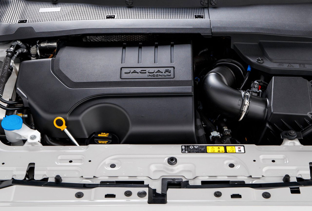 与PACE家族里的F-PACE不同,E-PACE虽然也是匹配2.0T的引擎,但它使用的是横置布局,引擎曲轴与其所配合的9AT自动变速箱输入输出轴保持平行,方向一致,因此动力传输距离短,再加上9AT变速箱本身就比较绵密的传动比,效费比明显要高许多。