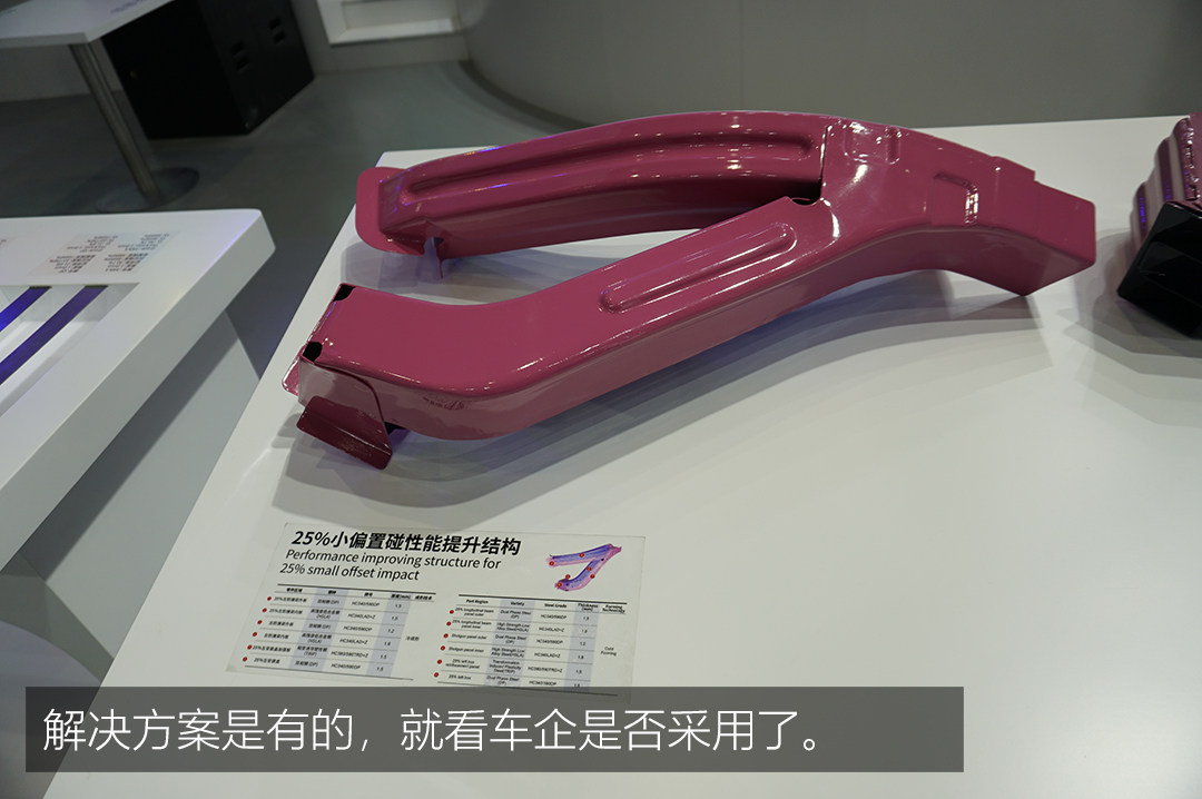上面的防撞梁只是一个宝钢展台的一个缩影,教授在这里看到了各类品牌的车身构件。与工作人员简单交流后得知:宝钢可以负责供应成品件,也有为车企提供完整解决方案的能力。这里的“解决方案”是指: