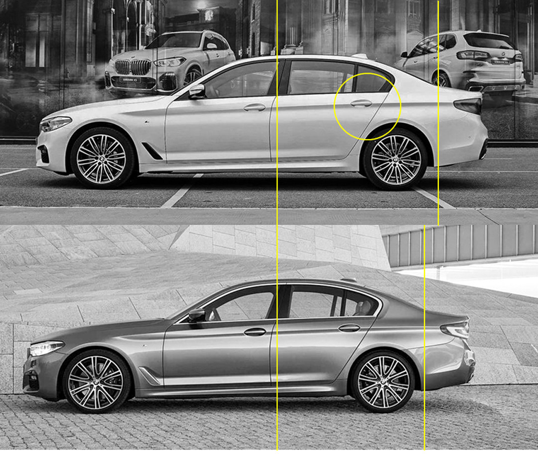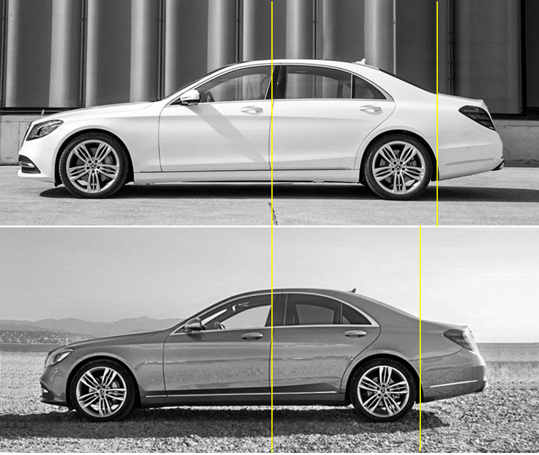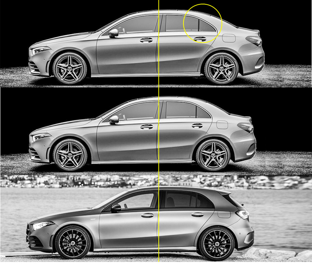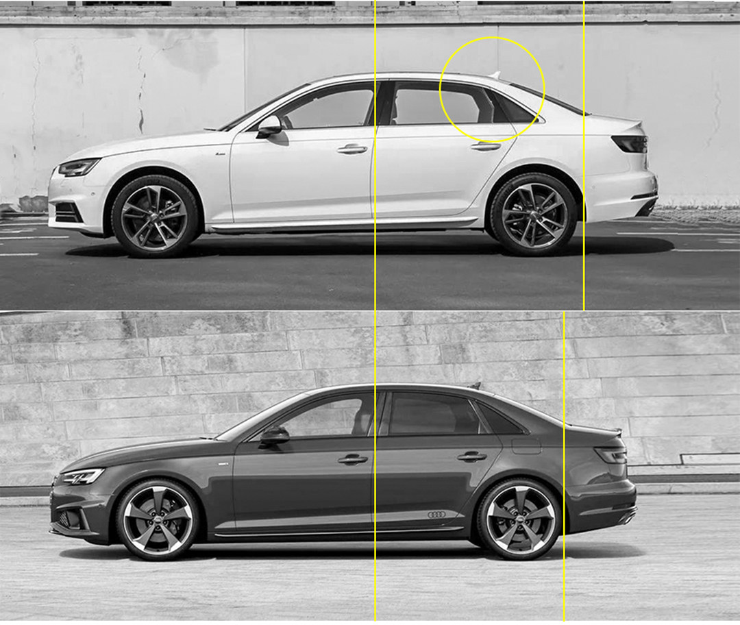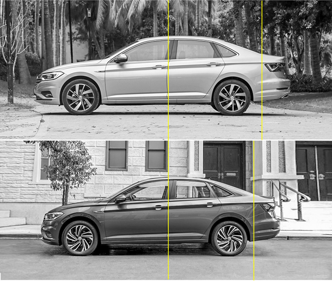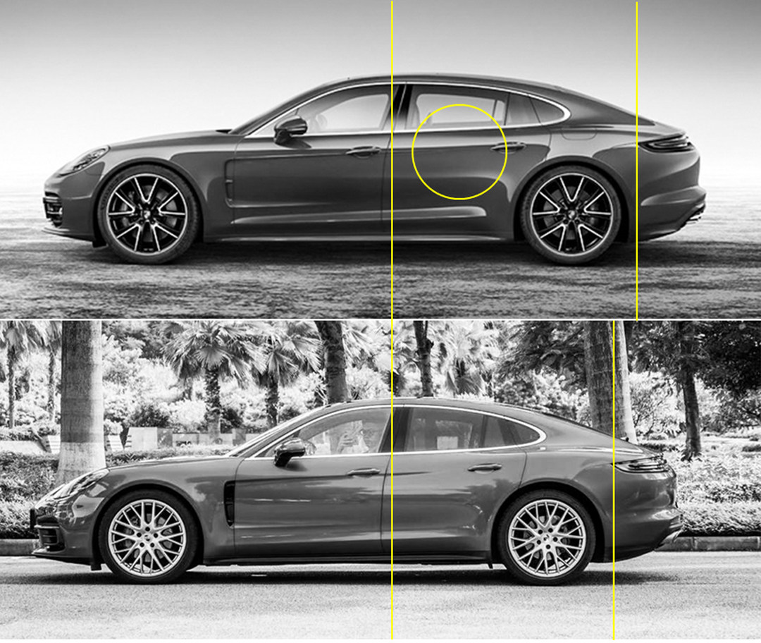 这并不是PS,这车仿佛就是如此直接地先从中间切开,然后再把三角窗之前的部分拿出来直接拉长,最后再把车尾拼上去,这算什么鬼。