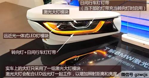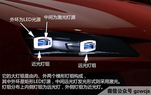 激光大灯比起LED大灯,光照效率更高、导向性更好,也就是说能照得更远,灯光还不散,不会晃到对面来车。更小的原件,能给天马行空的设计师们更多创意空间,或是给工程师们让出寸土寸金的发动机舱空间。“小眼聚光”,来形容激光大灯好像特别恰当。