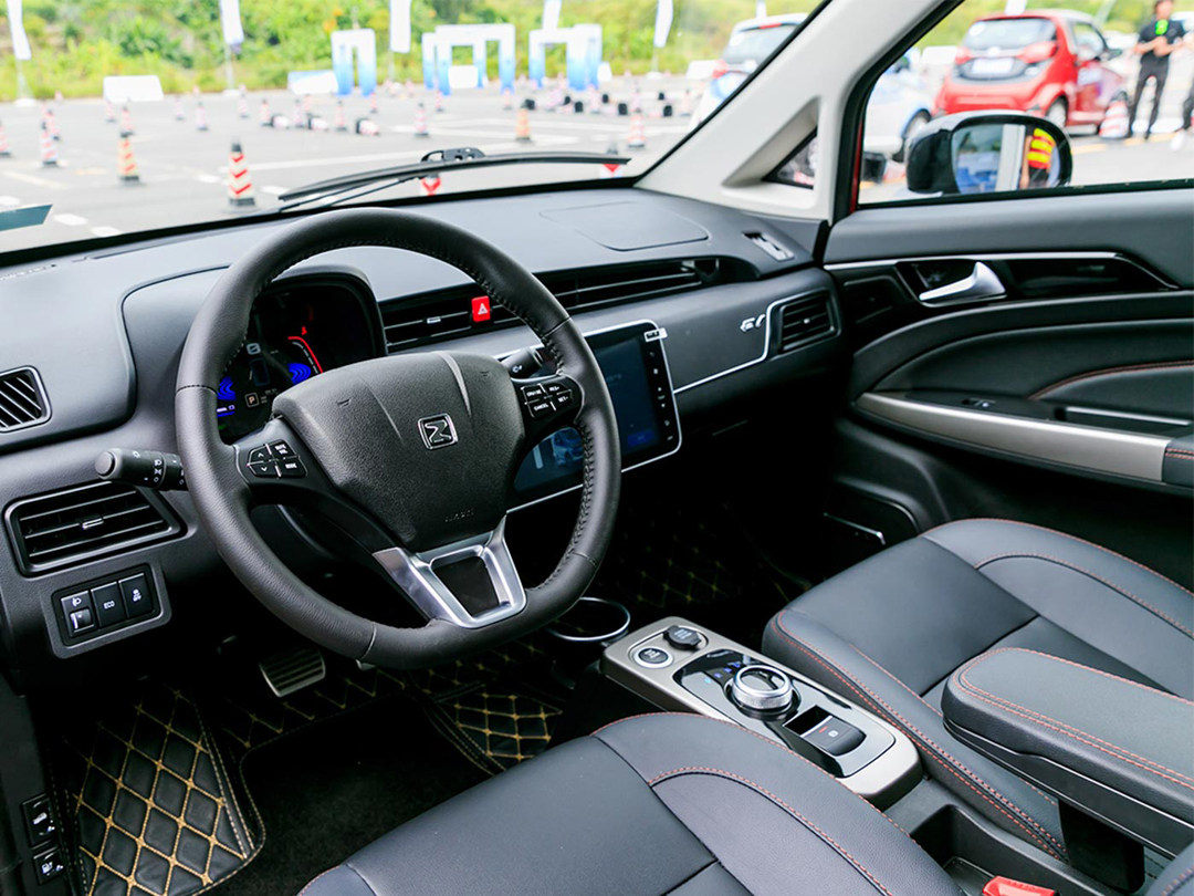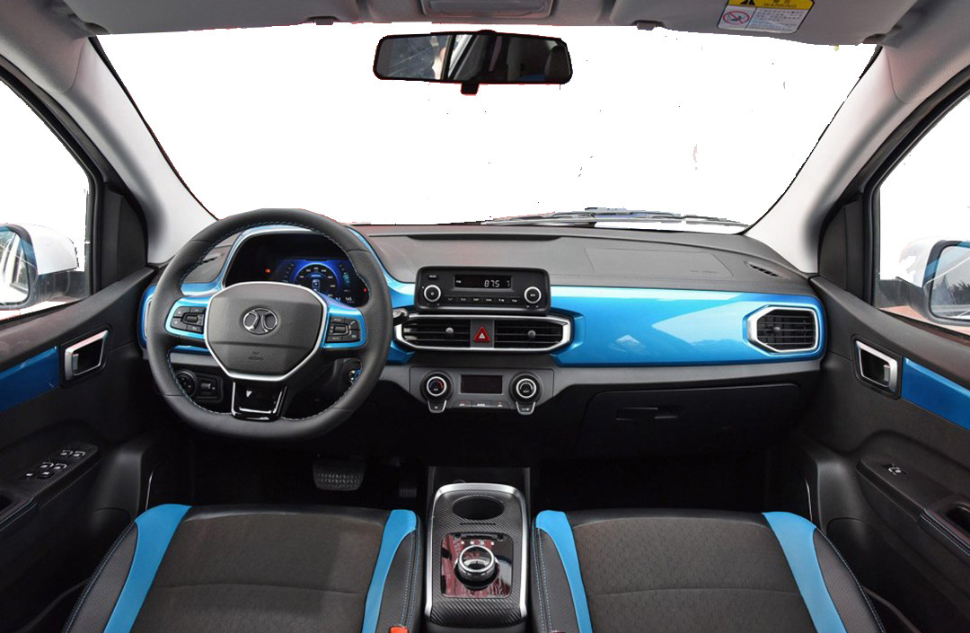 内饰方面,宝骏E200比众泰E200的优势出来了,更加晚上市,更加晚设计,让车辆的设计更加趋向现代化,也可以说更加科幻,由于没有设计出中央显示屏,所以中控台设计得更加潇洒,从左贯穿至右,全车的功能集中到驾驶员前方的显示屏里;方向盘是不规则的造型,多功能按键设置在方向盘3,9点的位置,并且使用中文标注,所以即便是不懂英文的也可以迅速上手。换挡杆、转向灯杆都使用亮色的设计,增加车内的高级感。