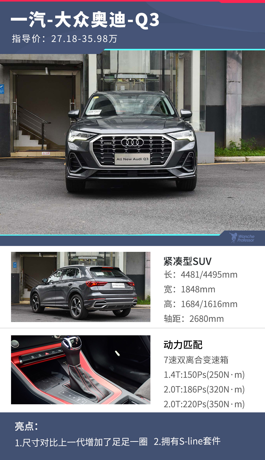 4月16日,万众期待的新一代国产奥迪Q3正式上市,此次共推出8款车型,售价区间为27.18-35.98万。Q3作为奥迪当年首款试水中国豪华紧凑级SUV市场的车型,成功让豪华品牌更加亲民,那么这次换代后,哪一款车型更值得购买?