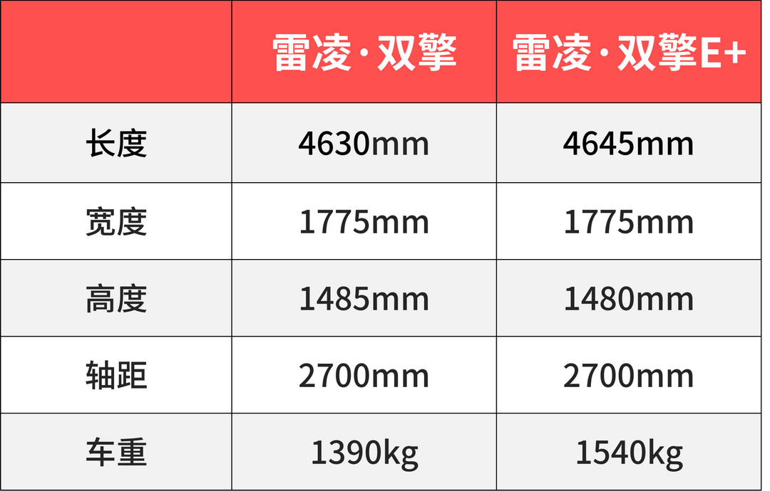 两车的车身尺寸没有太大的区别,轴距均为2700mm。雷凌E+因为大容量锂电池的缘故,比雷凌·双擎重150Kg,将近2个成年男子的重量。