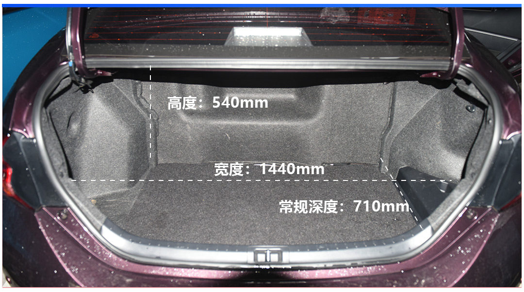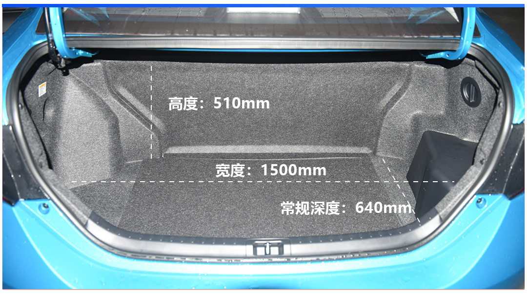 雷凌E+和雷凌·双擎都是将电池放在后备厢里,经过实测,PHEV的后备厢深度只比HEV的短7cm,对后备厢的容积影响不大。E+的后备厢容积有双擎的90%左右。