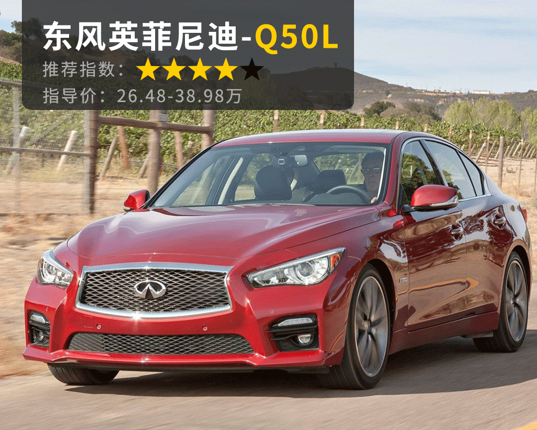 英菲尼迪Q50L的整体造型十分符合东方审美,在张扬和优雅之前取得了一个较好的平衡,无论外观还是内饰都拥有一辆豪华轿车的品质。此外它还搭载了来自奔驰的2.0T发动机,最大马力211匹,最大扭矩达到了350牛米,高配车型还有同级别独有的DAS线控转向系统。英菲尼迪Q50L现在普遍有5万元左右的优惠幅度,虽然没有ATS-L那么给力,但是全办下来基本也能在30万元以内。而且有外媒报道称,未来下一代英菲尼迪Q50/Q60/Q70车型将会放弃现有的前置后驱布局平台,改为前轮驱动+后置电动机搭配的新平台,所以想入手后驱车的老铁还是趁早买定离手吧!