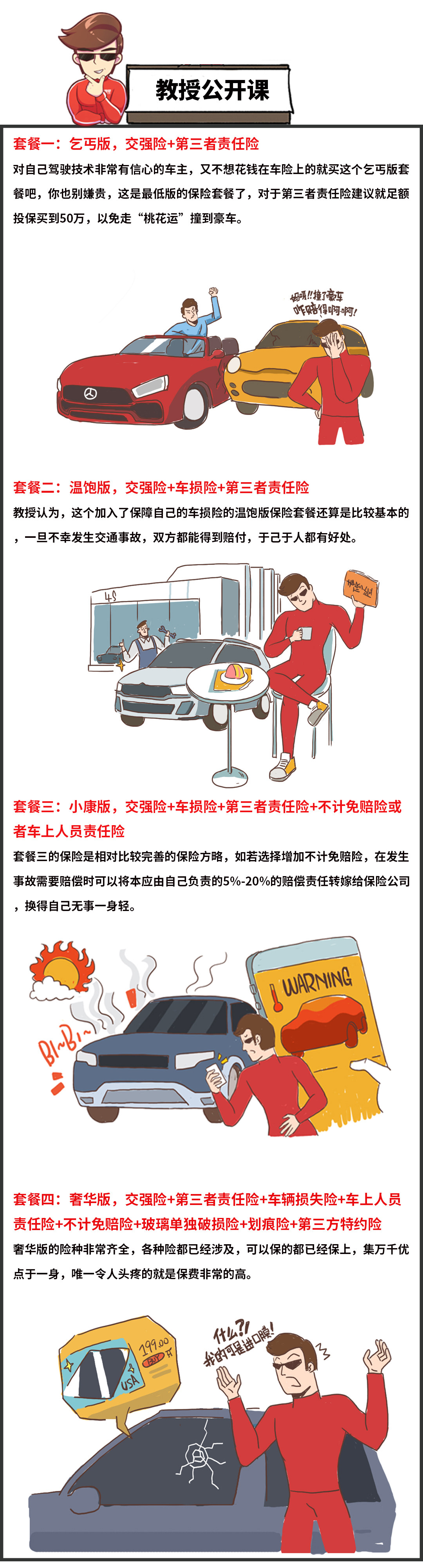 至于到底为啥买保险,说到底就是求份心安。保险对于新手上路是个非常好的保护网,对老司机而言,买买相关的意外险出了意外事故也有个保障。但是,但是,但是,教授认为行车的安全,最终还是掌握在我们自己手里,且行且注意安全。