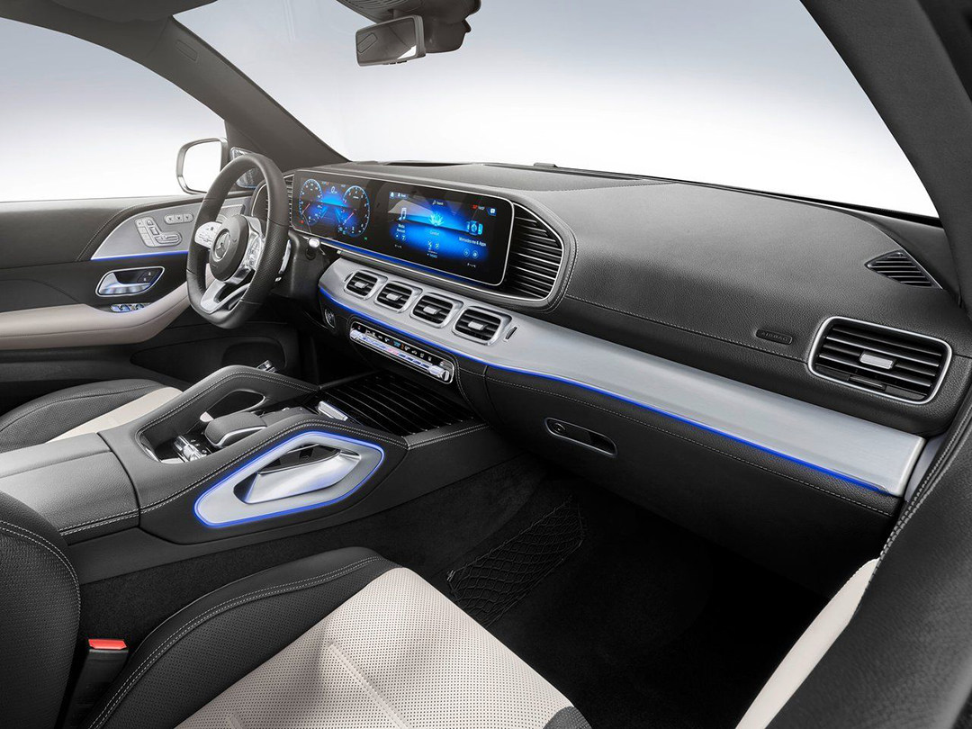 内饰风格也浑然不同,与其他同胞一样的采用了奔驰时兴的MBUX的人机交互系统,并可通过触屏的方式操作,除此之外内饰设计相比于上代车型要颠覆太多,大量真皮包裹和木纹相搭配,十分显豪气的高档感,事实上这样的做法相当讨趣,对比于宝马X5还是奥迪Q7都好,优秀的豪华感氛围营造,一直是奔驰最擅长的事情。