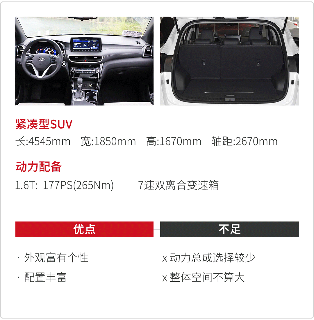 适合人群:对途胜的外观设计情有独钟,对车辆其它方面表现要求不高的消费者。