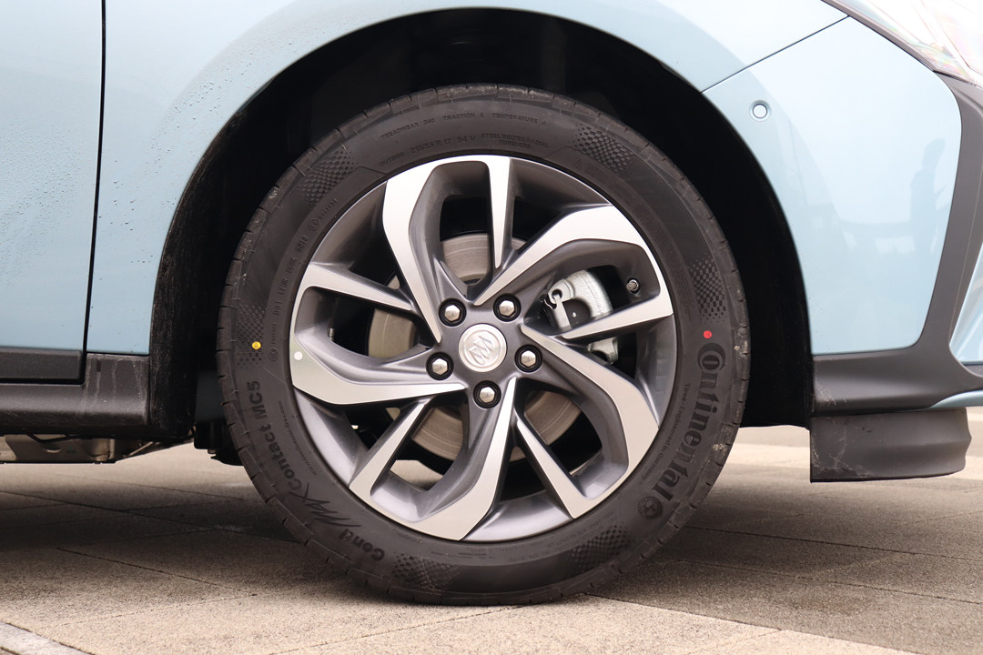17寸的轮毂配合上马牌MC5 215宽度的轮胎,这款轮胎主打操控和舒适性,而没有使用市面上大部分新能源车型使用的静音节能轮胎,看来别克对于VELITE 6的期望不是单纯的长续航。