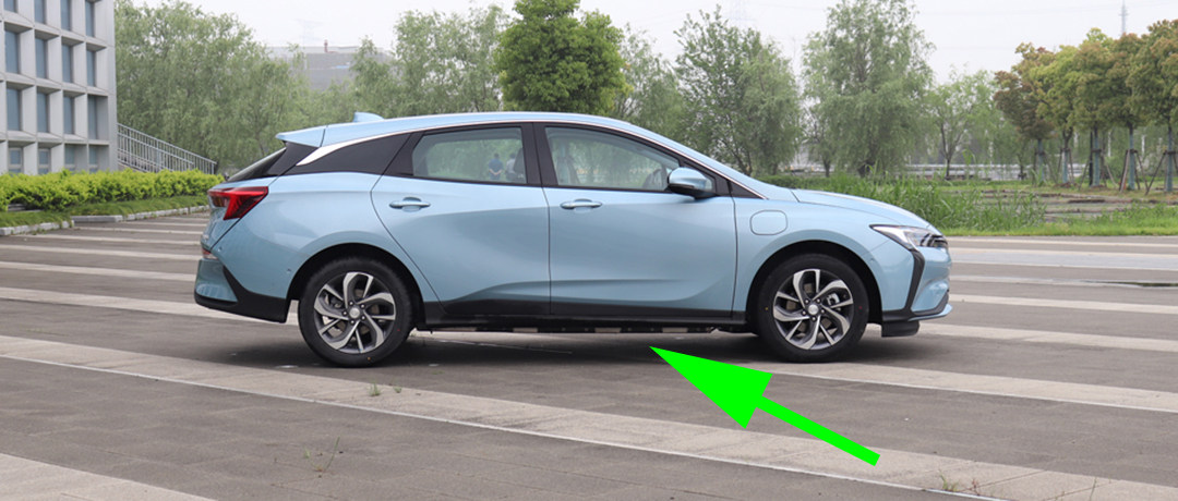 电池组位于车身下方,容量为35kWh,如果在外面蹲下来看是可以明显看到电池组突出车身一截,对于车辆的通过性是不利的。