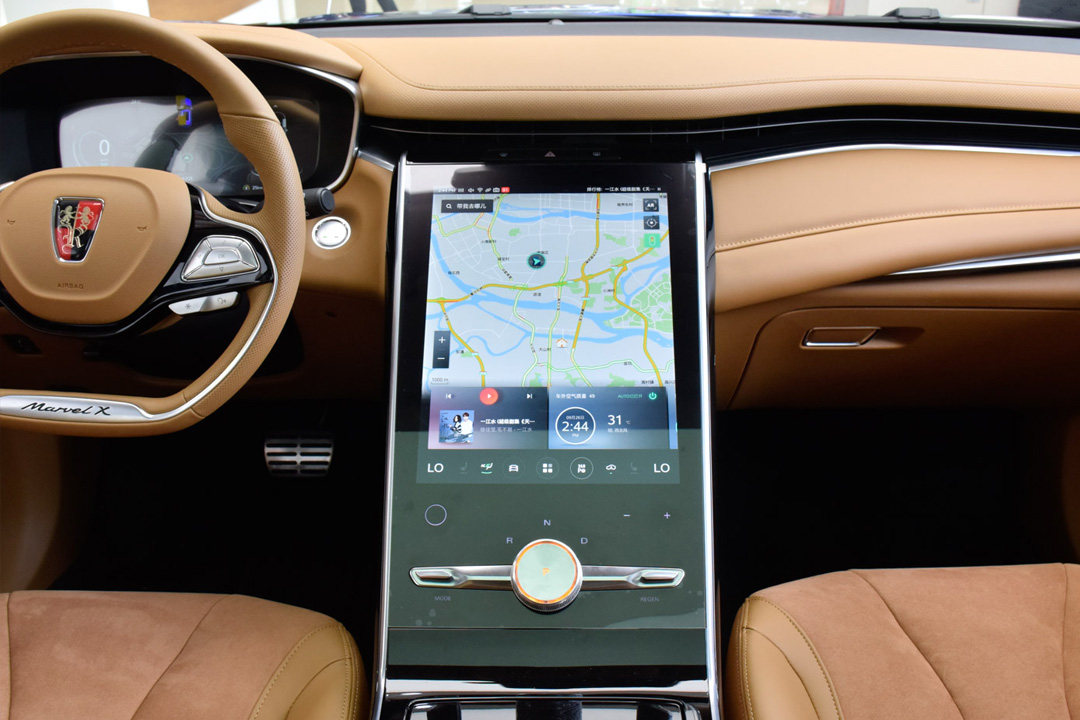 既然荣威MARVEL X售价并不便宜,那么内饰的质感也是否符合这一价位应有的表现?它的车内采用19.4英寸中控大屏,可与12.3英寸全液晶交互式虚拟仪表实时互动,配合极具科技感的电子旋钮等前卫配置。