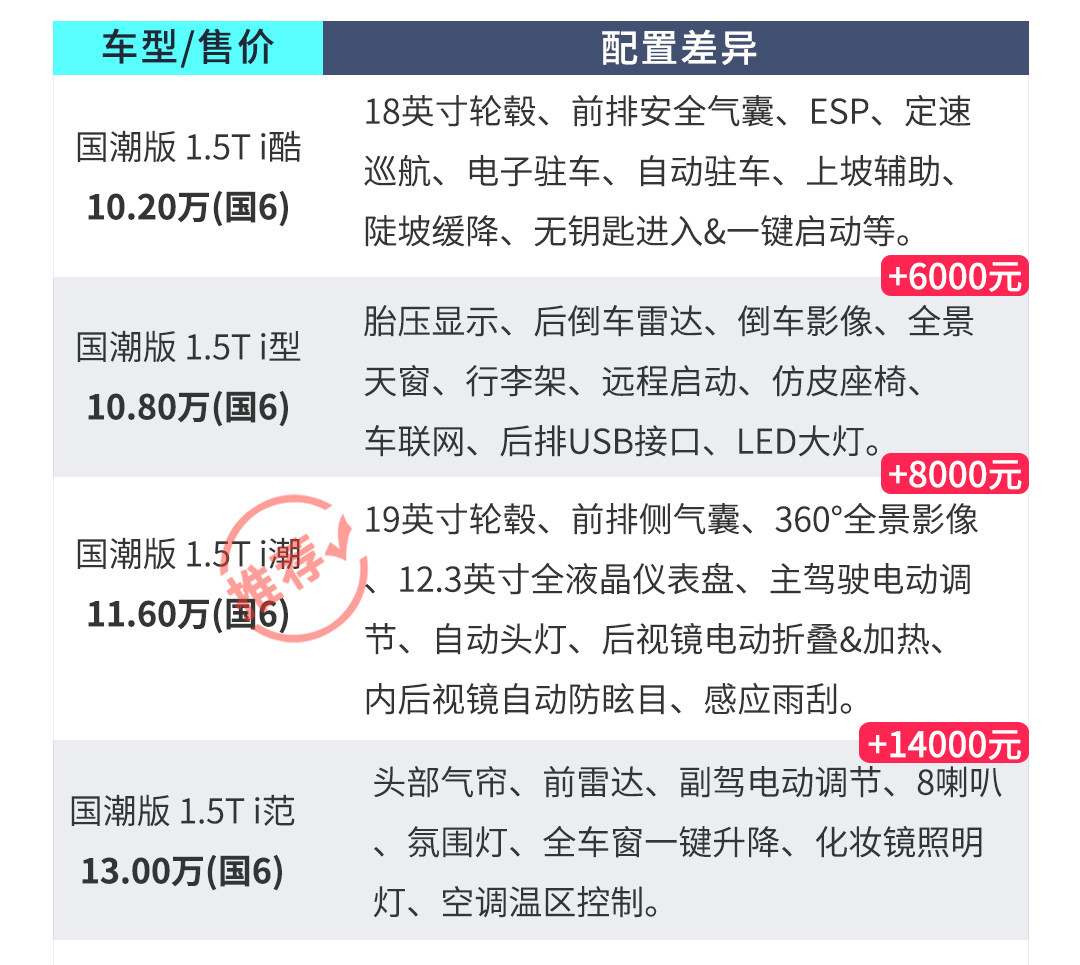 售价为11.80万元的次顶配版本是教授认为最值得购买的车型,不仅配置非常丰富,售价也比较适中。至于顶配车型,除了上图展示的配置差异之外,还有并线辅助、车道偏离预警系统和车道保持系统,但教授认为14000元的差价还是比较大的,而且这里面除了气帘和前雷达之外,其他配置也仅仅只是锦上添花而已,只能推荐给预算十分充足的朋友。