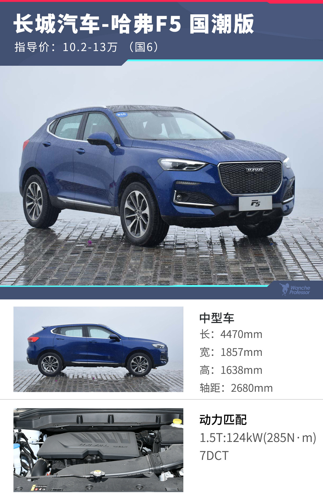 4月28日,哈弗F5推出了国潮版车型。新车共提供4个配置版本,每个版本分为国5和国6车型,其中国6车型比国5车型增加了2000元,但升级了换挡拨片和电子挡把。同时针对拥有车联网系统的车型提供4G流量三年免费无限用、基础服务+SOS服务永久免费、智能私享管家服务三年免费等政策。除此之外,在4月1日-5月31日之间,哈弗针对F5还推出了一系列优惠活动,包括“现金礼 4000元、置换礼 4000元、金融礼 6500元,最高享14500元的综合补贴,还可享“0首付、36期0息、48期低息”等多种金融方案。点此浏览哈弗F5试驾感受