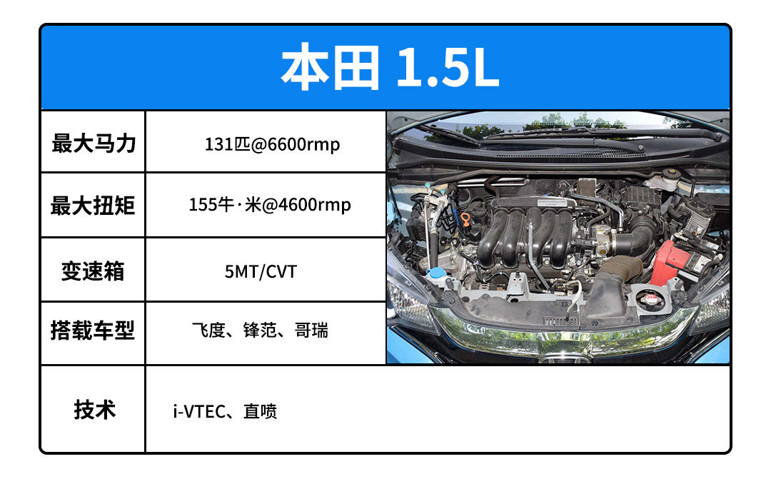 这台1.5L地球梦算小排量自吸里动力最强,搭载CVT变速箱又让动力变得很顺。调校偏运动,油门一点就有,油耗不算高,不过噪音感人。不过官方建议要加添加剂,否则会积碳。