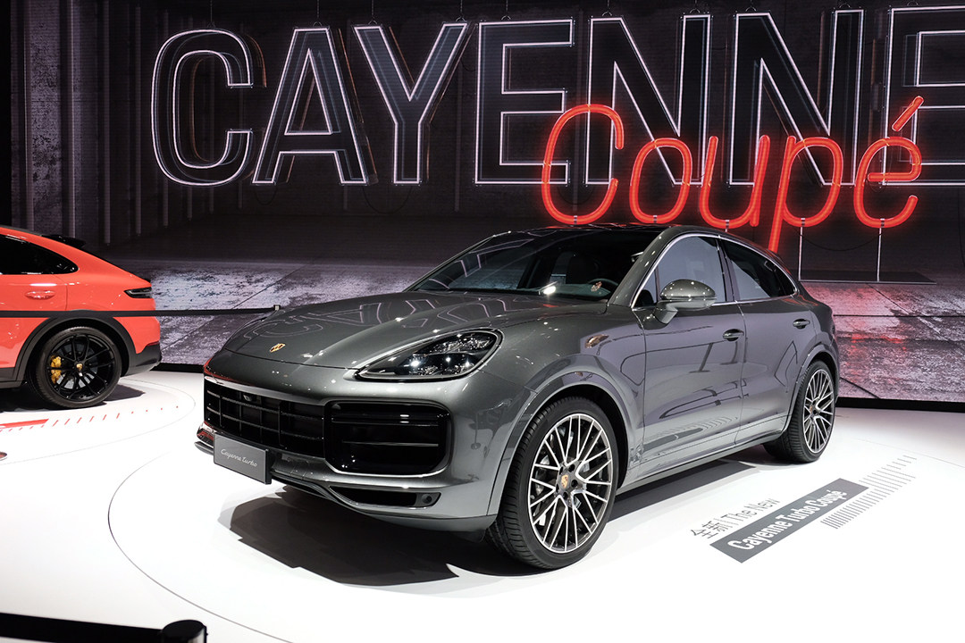 还有保时捷Cayenne Coupe,新车和Cayenne前脸保持一致,区别在于Cayenne Coupe有修长的D柱;还有可选轻量化运动套件,其中包括中心下沉式的碳纤维车顶、22英寸GT Design轮圈、带有格子纹的座椅以及采用碳纤维饰板和Alcantara面料的内饰等。Cayenne Coupe的动力也与Cayenne保持一致。