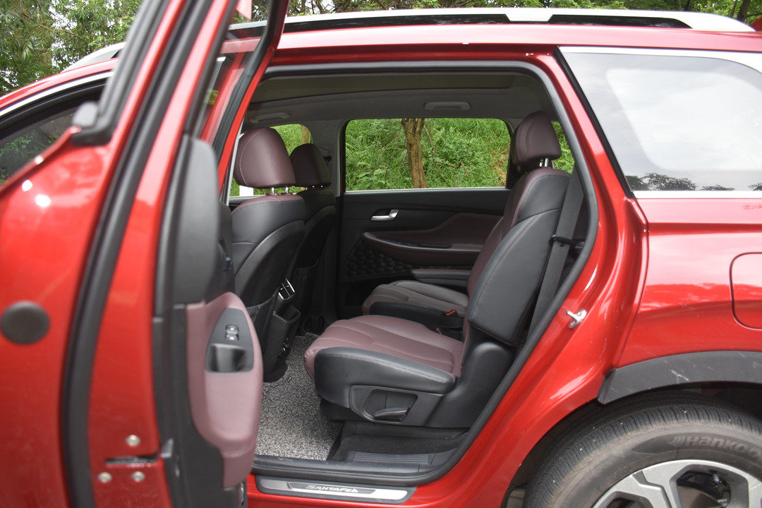 第二排只能给中上评,这绝非是第四代胜达表现不够好,而是我们这台胜达虽是独立座椅的六座版,但和MPV的独立座椅相比还是不够舒适,没有腿托,扶手偏短,坐垫高度偏低偏短,倾角不够大,地台略高,没有那种一坐进去就深陷其中的感觉,教授1米86的身高反而有点像坐矮凳,甚至还不如连体座椅的汉兰达舒适。但是,第二排腿部和头部绝对空间大小无可挑剔,比同级其他7座SUV都要大,包括汉兰达。只有5座的冠道能与胜达媲美。