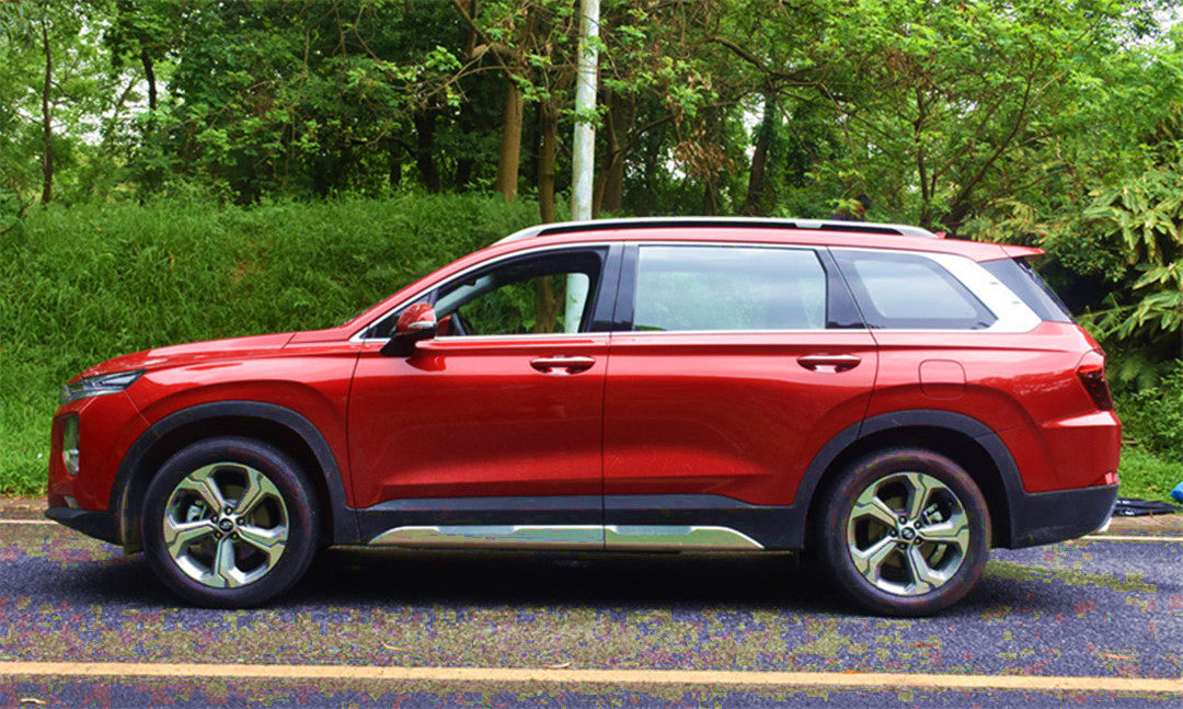 来到侧面,侧最能体现北京现代的诚意。老款第三代胜达由于引进的是短轴版,因此整车外观看起来小,内部空间特别是第三排很局促,这是它销量不温不火的原因。而国产的第四代胜达不仅引进了长轴版,而且还根据国人的喜好进一步拉长了C柱和D柱之间的车身长度,所以国产第四代胜达比海外版还要长,在大车感的营造上甚至胜过了同级标杆丰田汉兰达,相信内部空间表现也会很好。