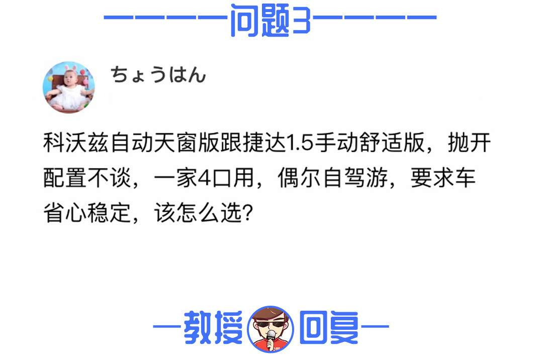 抛开配置不谈,那么纯从耐用度来说,捷达相信能坚持到最久,因为在捷达整车的布局宛如教科书,基本上坏了随便一家快修店都能解决问题。不说回来,买车就是为了享受,一些舒适性的配置有了能让车子增添不少活力与高级感。对于两者的从配置上来说,捷达的配置会比科沃兹还要多一点,所以教授也会优先推荐捷达。唯一的问题,似乎就剩下手动变速箱是否真的能接受了,毕竟一塞车起来可是很难受的。