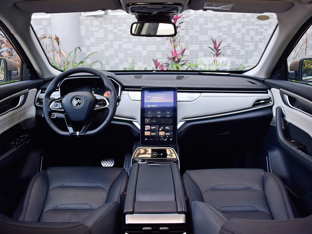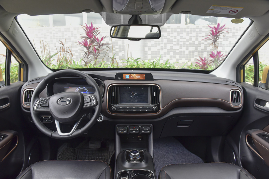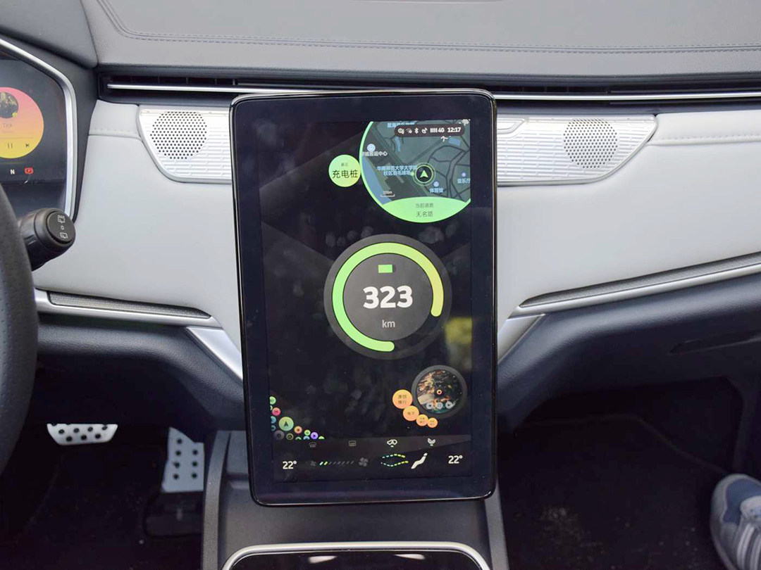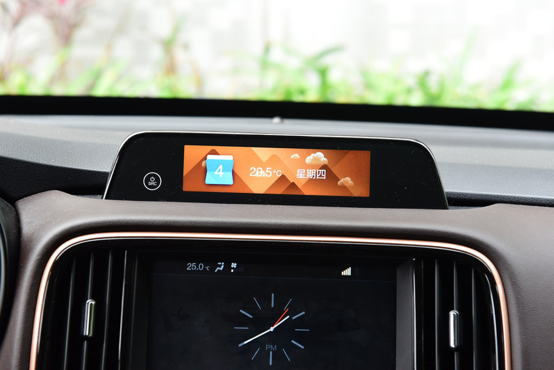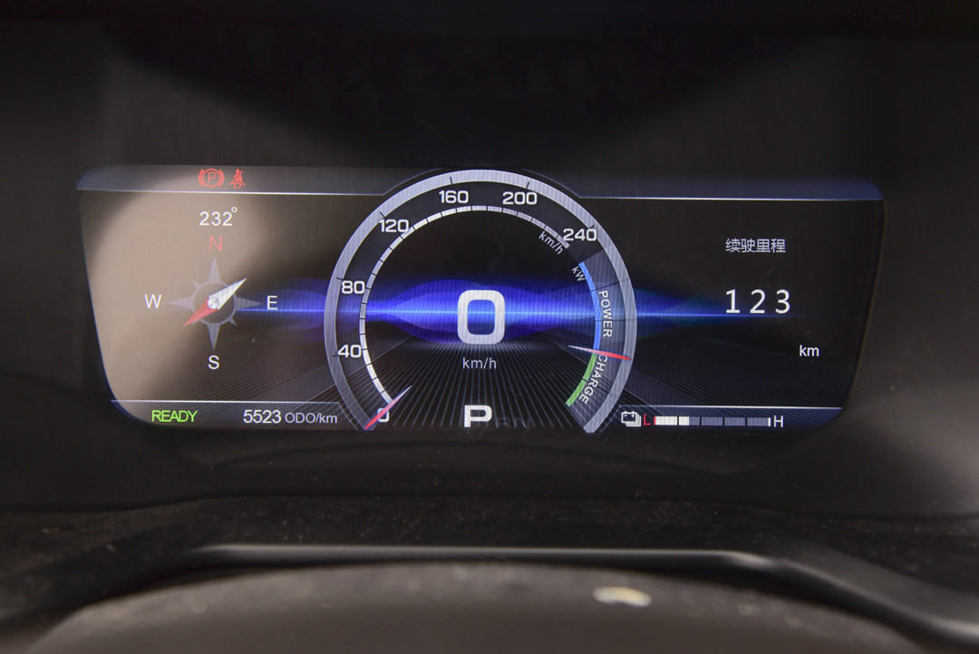 GE3的内饰相比起威马EX5就更像是传统的车机,整体设计以圆角矩形为主,虽然在今时今日看,这一套内饰不算是特别落后,但相比起威马EX5起来,就相形见绌;无论是大屏,还是人机交互都不如EX5,不过放在传统车厂来看,GE3还是交出及格的答卷,真皮方向盘、相对大尺寸的中控屏以及上方交互的小屏幕都是GE3的亮点;全液晶的仪表盘虽然没有EX5般科技化,但易读性高,显示的信息也很丰富,唯一的不足在于屏幕在有些角度会反光,在行车的时候影响行车信息的读取。