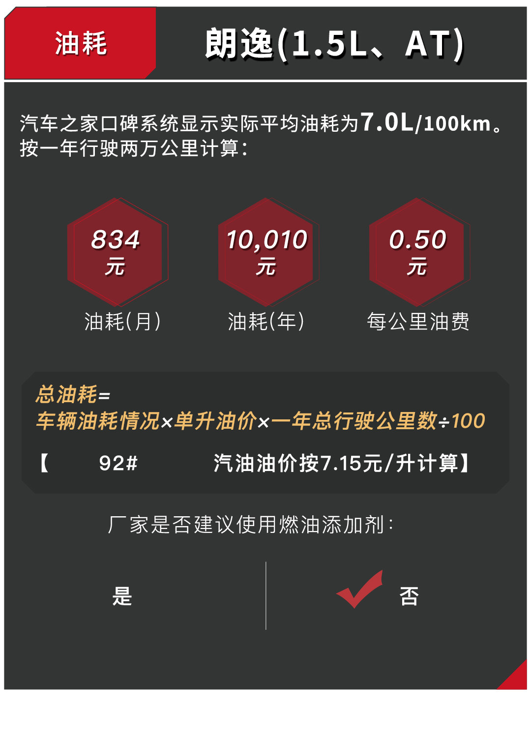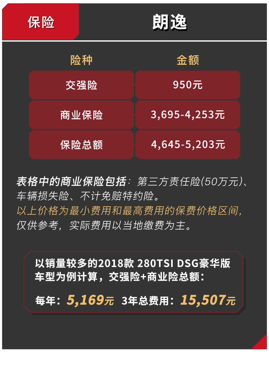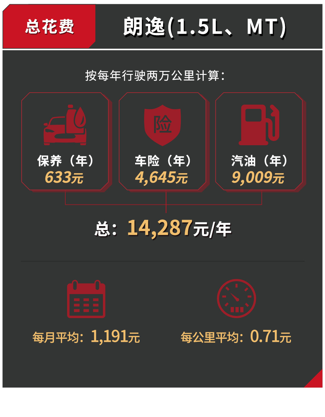 从上面的分析可以看出,朗逸真的不愧为一代家用神车,低廉的保修费用以及足够省油的油耗都让朗逸的性价比超高。不过值得注意的是,1.5L车型保养用的机油默认是矿物油,建议首保之后的保养都把机油换成半合成机油,这样才能更好延缓发动机磨损。另外,1.2T与1.4T车型都要加95#汽油,千万别因为贪便宜加了92#。