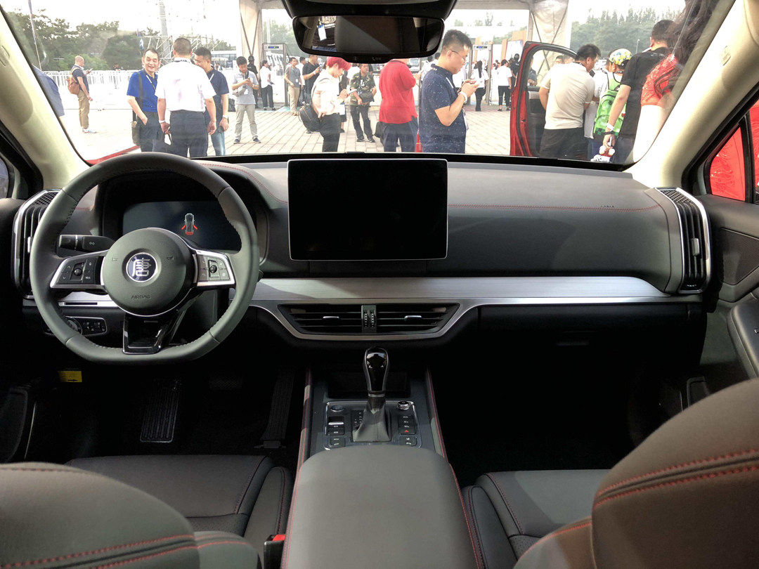 内饰方面的进步是EU5最大的卖点,相比起EU260廉价的内饰,EU5简直是精装修,内饰融入了北汽一贯的圆形出风口以外,还有大面积的饰板,悬浮式的显示屏加上类似奔驰的空调调节按钮,让EU5的内饰精致起来。