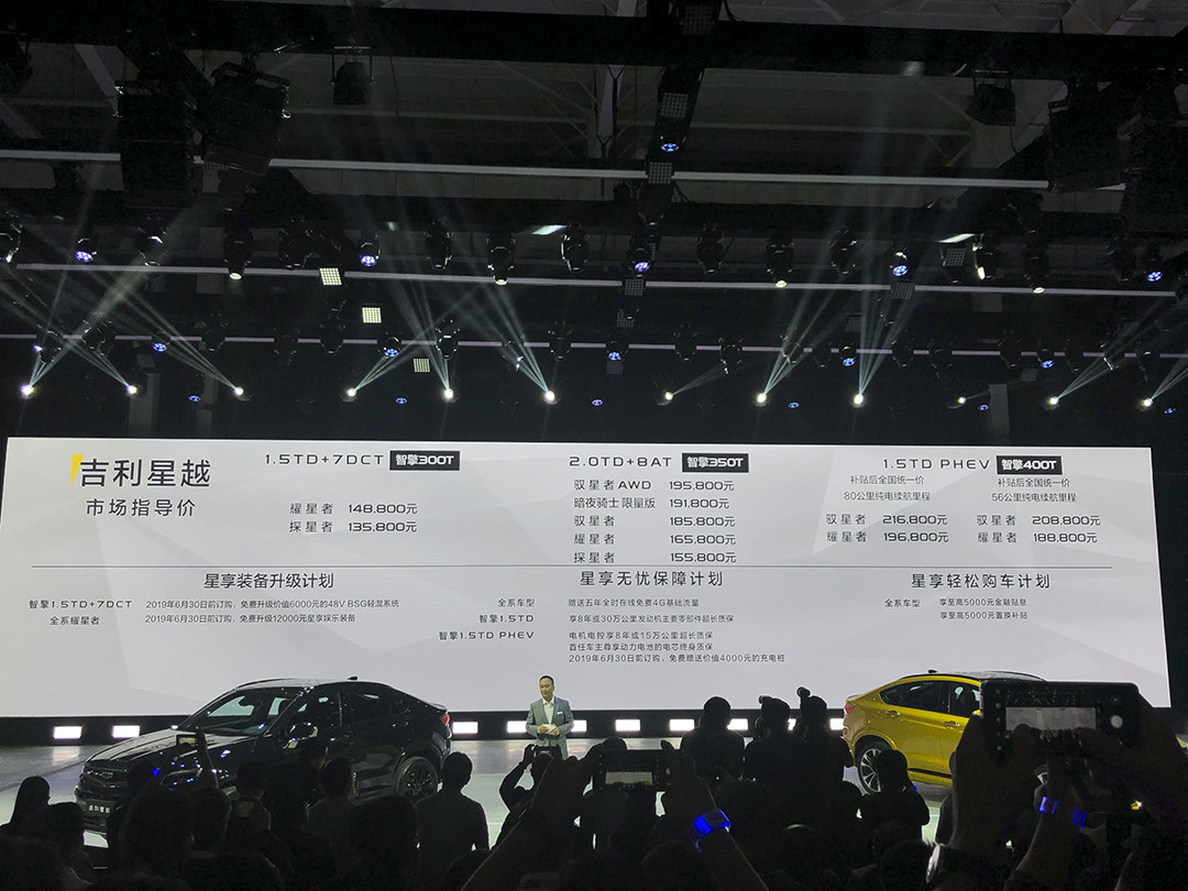 2019年上半年,吉利有三款重点推出的新车,每款车都代表着新领域的突破。第一款是打入家用MPV市场的吉利嘉际。第二款是高端新能源领域的新尝试:几何A。第三款则是今天(2019年5月10日)正式上市的全新轿跑SUV——吉利星越。