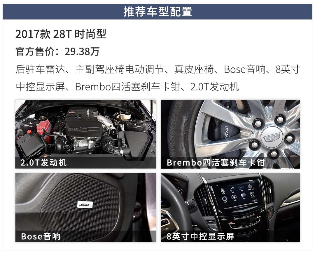 明智的“价格战”策略让凯迪拉克品牌得以在芸芸的二线豪华品牌中脱颖而出,并顺利成为最靠近BBA的那位幸运儿。就以担当品牌销量主力的ATS-L为例,2.0T高功率发动机、8AT变速箱、Brembo四活塞刹车卡钳皆为全系标配,此外全系平均还有将近10万的巨额让利。彻底打消消费者对于高低配车型动力总成差异过大的忧虑,更为关键的是即便是低配车型也能满足购买ATS-L目标人群的高性能需求。