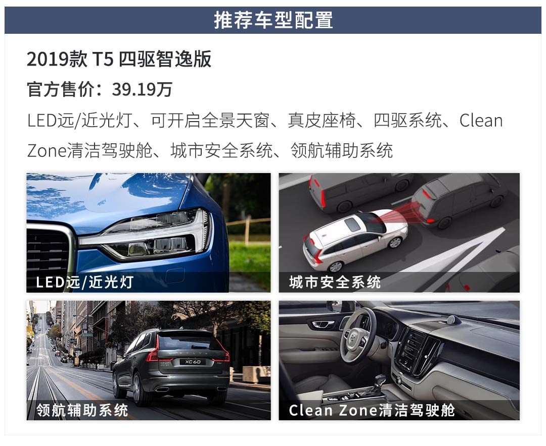 “收归国有”后的沃尔沃品牌开始变得亲民,从配置到优惠再到动力系统的分布处处体现人性化。给XC60的待遇就是除却乞丐版车型以外,全系标配2.0T高功发动机+8AT变速箱的动力组合外加全时四驱。至于为什么不用考虑高配,全因低配车型配置已足够给力。