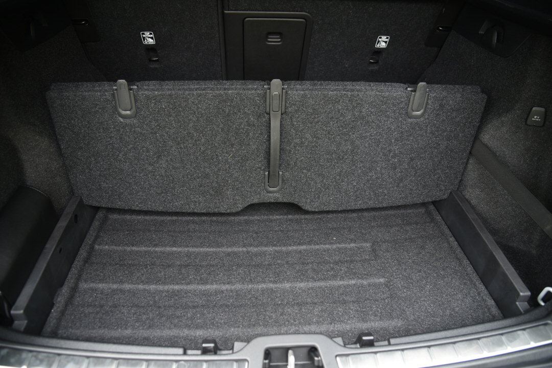 打开尾门,会发现XC40的后备箱并不算特别大,但非常平整,并且通过各种取巧的方式赢得了不少空间。如可折叠式的地板,折叠后还可有三个挂钩挂东西,行李箱盖板也可塞进地板中,灵活性非常大。