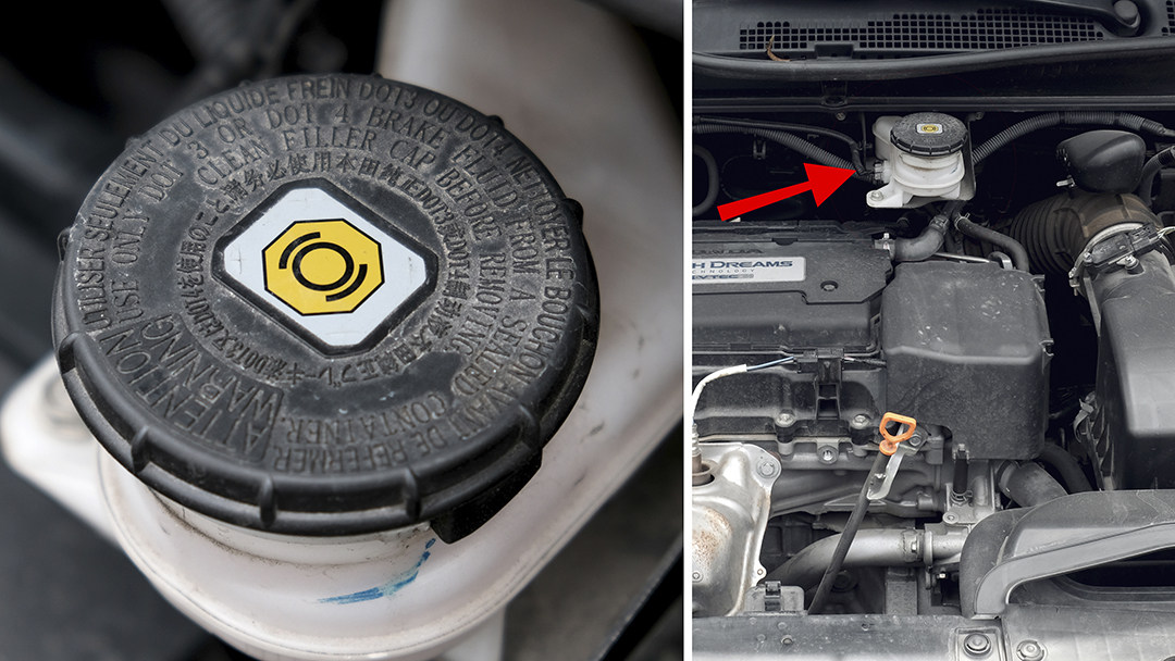 一般刹车油壶都会安装在引擎舱中相对显眼的位置且标注有推荐使用的刹车油标号,如DOT3、DOT4等。