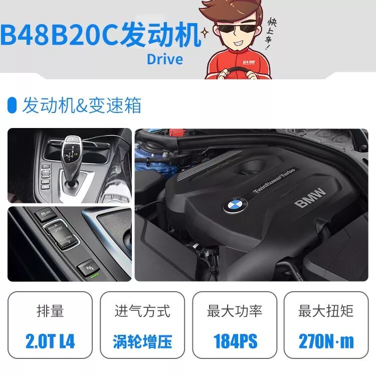 宝马320Li搭载的是B48B20C低功率发动机,也是宝马动力模块化的新产物,采用的是缸内直喷技术,优点是扭矩爆发在1350转就能爆发,涡轮迟滞的问题几乎没有。所以在马力和扭矩都不及同场对手的情况下,在调校出色的8AT变速箱加持下,始终能输出发动机的最佳工况,能为加速弥补不少优势。