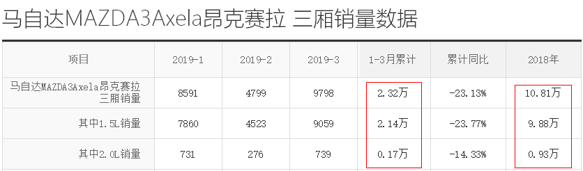 而且昂克赛拉的2.0L车型是有点尴尬的,起步价为15.59万,这个价格,为什么空间不买更大动力更强的思域?翻看昂克赛拉的销量,2018年全年售出的12万辆当中,2.0L车型只有1.5万,也就是买昂克赛拉的消费者,差不多90%都是买1.5L车型,证明买A级车的消费者都是很务实的,1.5L够用就OK了。