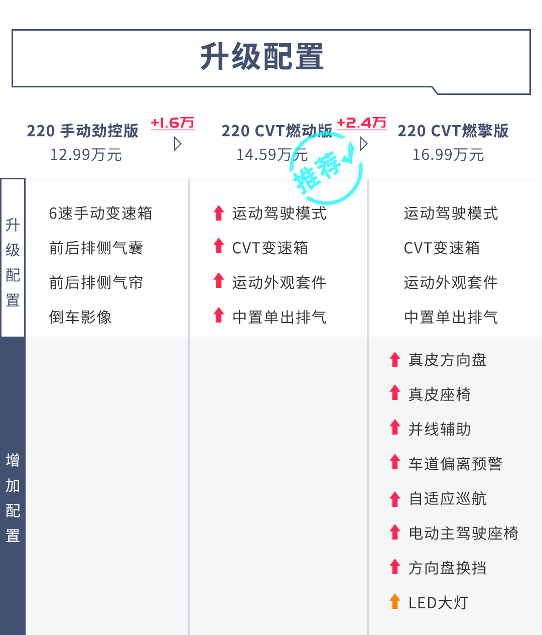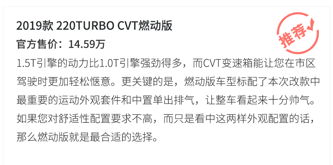 在8款车型配置中,教授挑出3款高性价比的车型,其中一款推荐车型则是教授认为性价比最高的车型配置。