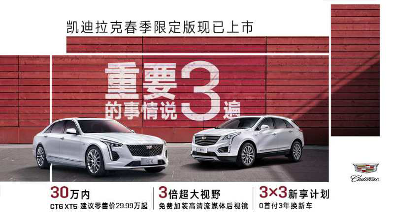 现在凯迪拉克推出春季限定版活动,CT6 28T时尚型、XT5轻混车型春季限定版建议零售价仅为29.99万起!
