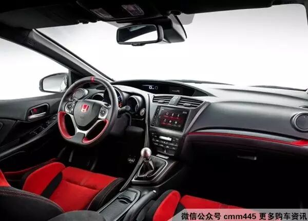 内饰采用红色和黑色材质进行包裹,三辐式运动方向盘和短小精悍的手动换挡杆,三圆仪表配合电子液晶显示屏的分体式仪表盘设计,其中电子液晶屏能够提供多种车辆信息。给人一种蓄势待发,随时将进入战斗的感觉!