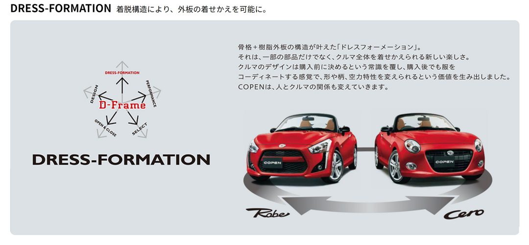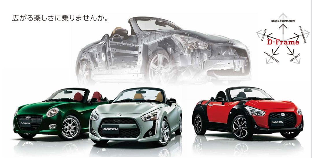 大发copen是一款敞篷K-car跑车,K-car是日本独有的一种车型。K-car的尺寸被限定到非常小的范围,购买它有一个政策优惠,就是不必提供车位证明。