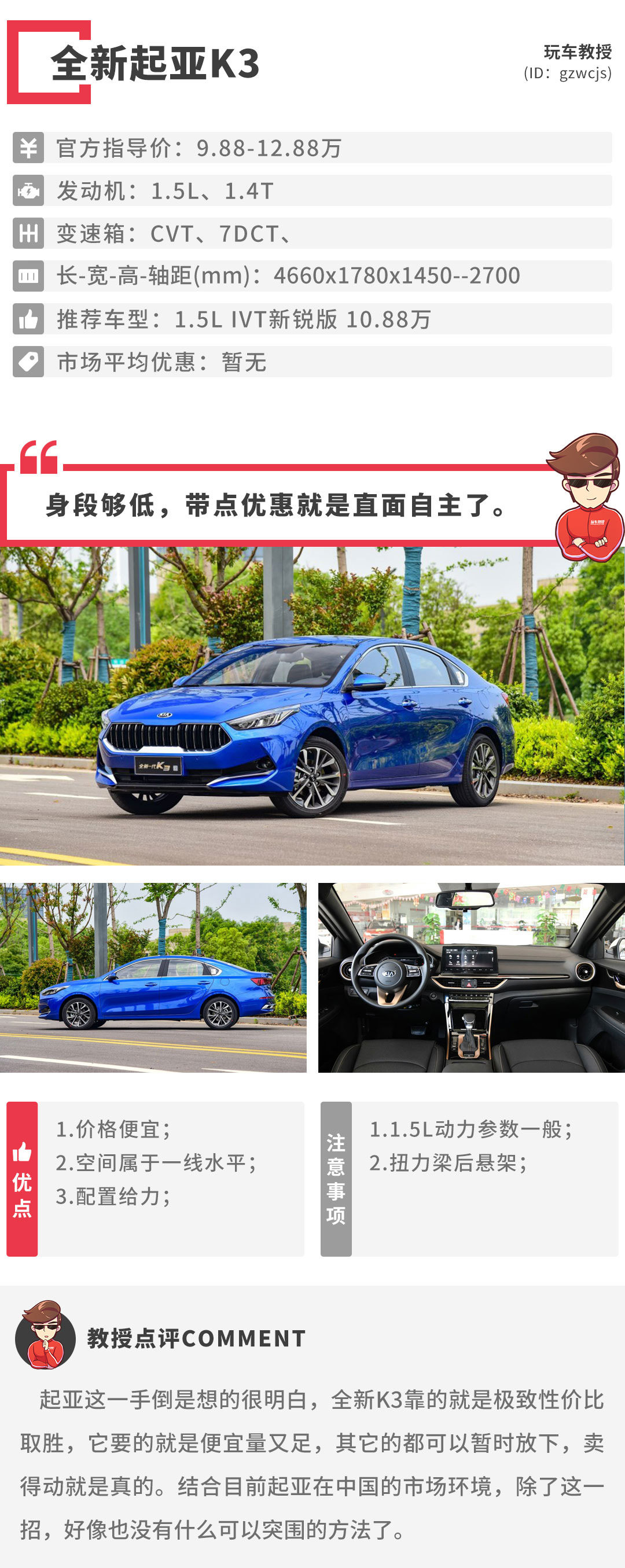 要知道,上一代K3是2012年上市的,在市场上顶了7年才换代。2017年还获得了14万的销量成绩,虽然2018年崩了,但那更多是大环境因素,K3本身还是有很多地方可以聊的。它拥有韩系激进的外观和充分的科技配置,动力......这个级别会有想开快车冲着韩系去的吗?新一代K3与上一代成功的法则是一样的:外观+配置。区别是:新一代更便宜了。