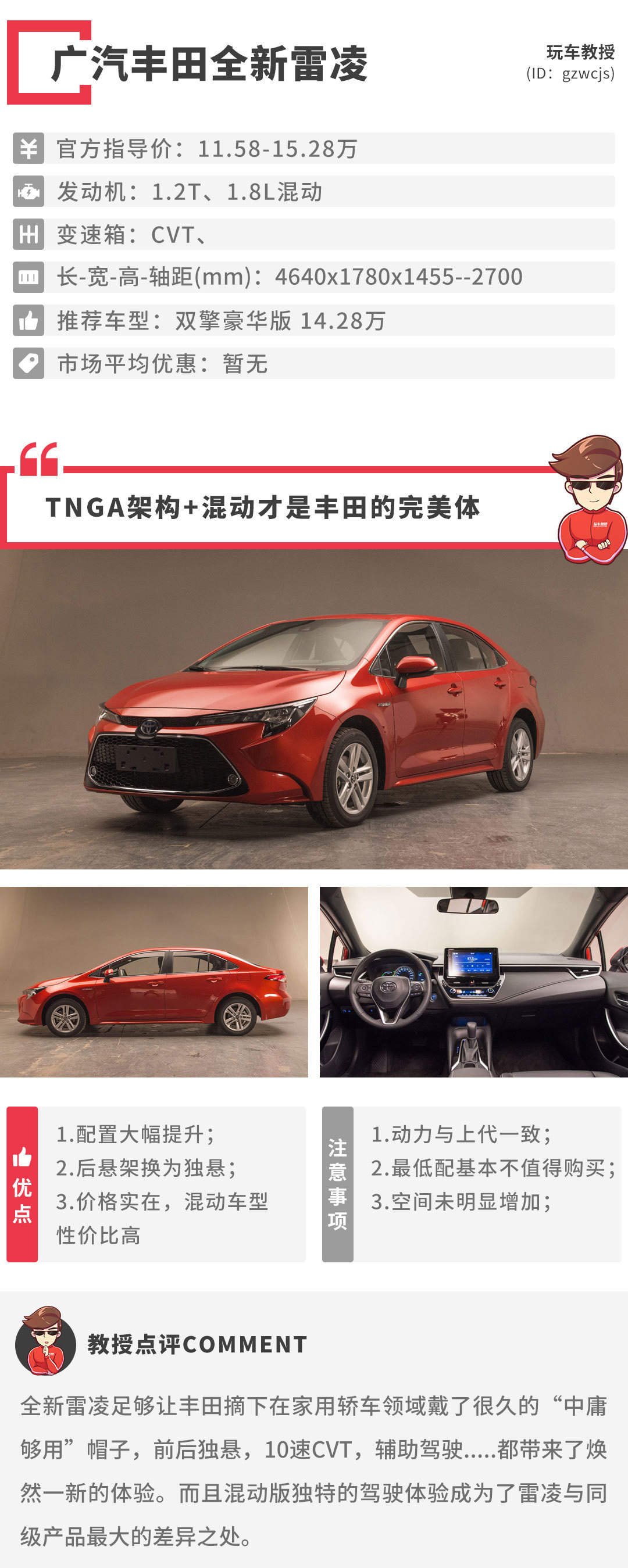 前两天,全新雷凌上市后,有朋友就和教授说:这车标扣了还认得出是丰田?TNGA架构对丰田的影响感觉比大众的MQB更深远。全新雷凌在个性化设计、驾驶乐趣和配置、科技等方面都有大幅度提升。买丰田就图个“够用开不坏?”,全新雷凌要带来颠覆性的体验。在很多产品将高配当成溢价筹码的时候,11.58万起售的全新雷凌让我们看到了最大的诚意。
