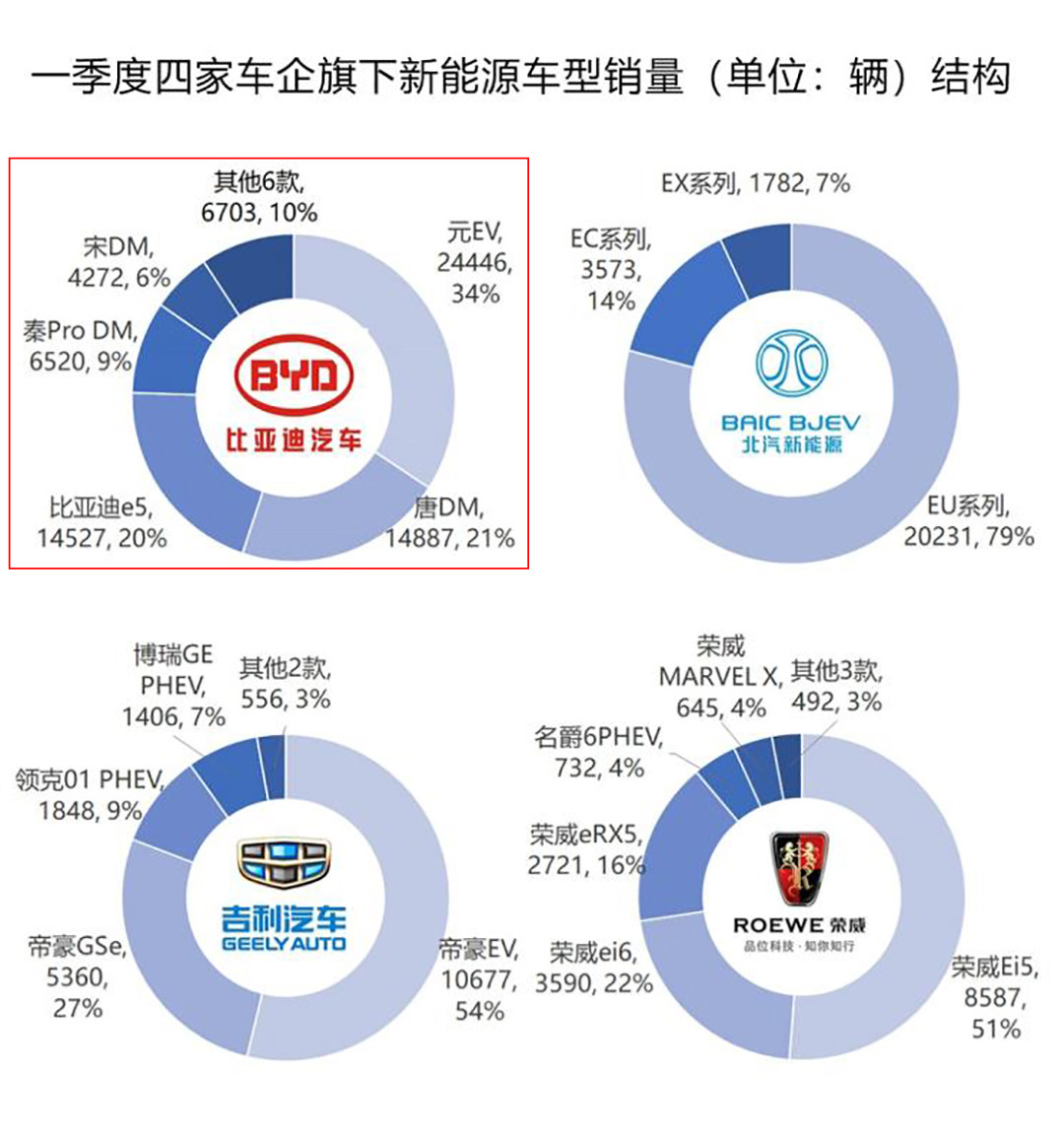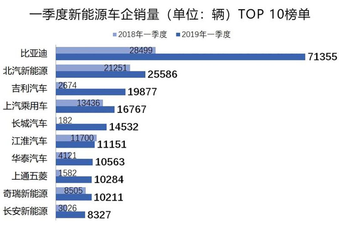 今年,依托众多单品的亮眼表现,比亚迪以一季度累计销售71355辆力压北汽新能源与吉利两大竞争势力,没有任何悬念地赢下9012年一季度新能源车企销量桂冠。