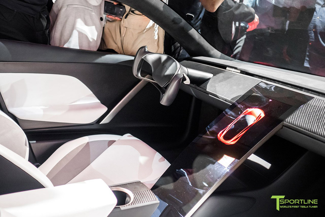 内饰方面也是尽显特斯拉的性格,简洁的同时融入科技感,中央一块大屏将车辆所有功能集成在内,极具科幻造型的方向盘不知道量产以后会怎样回归现实。