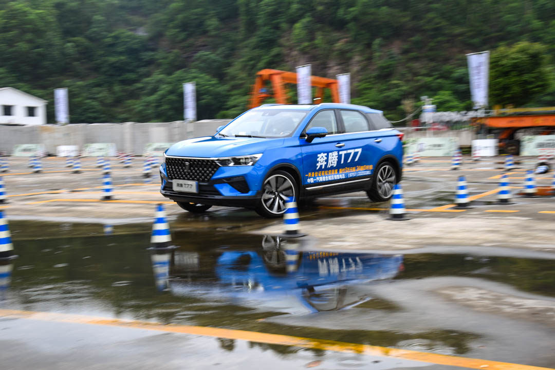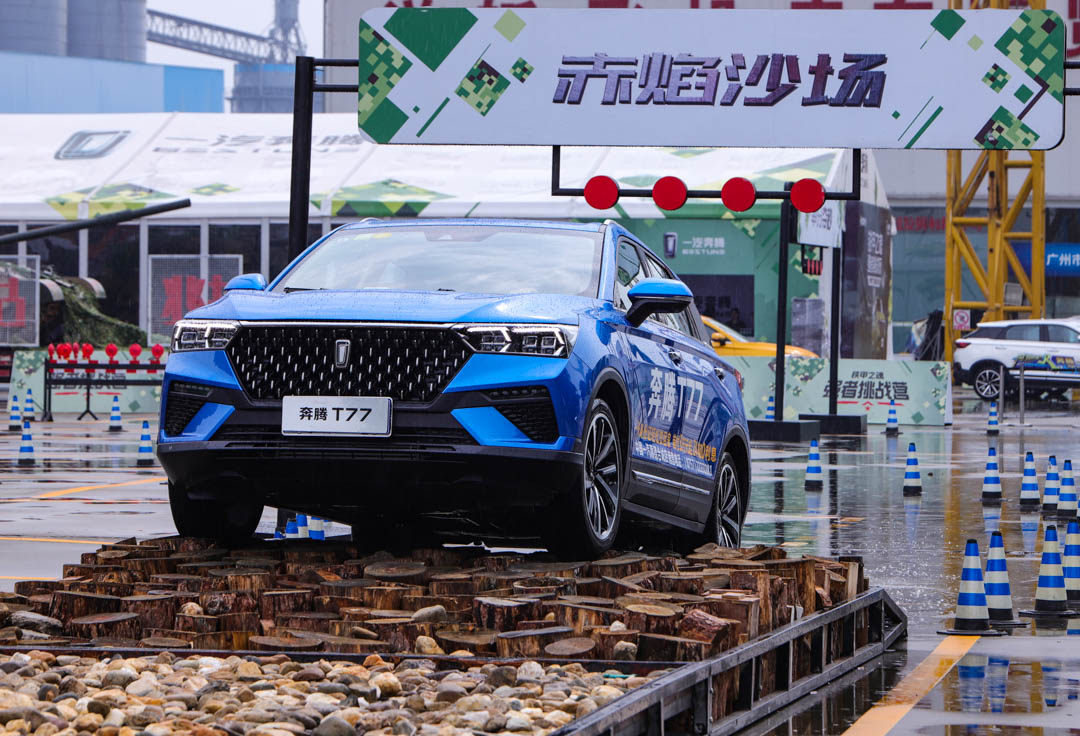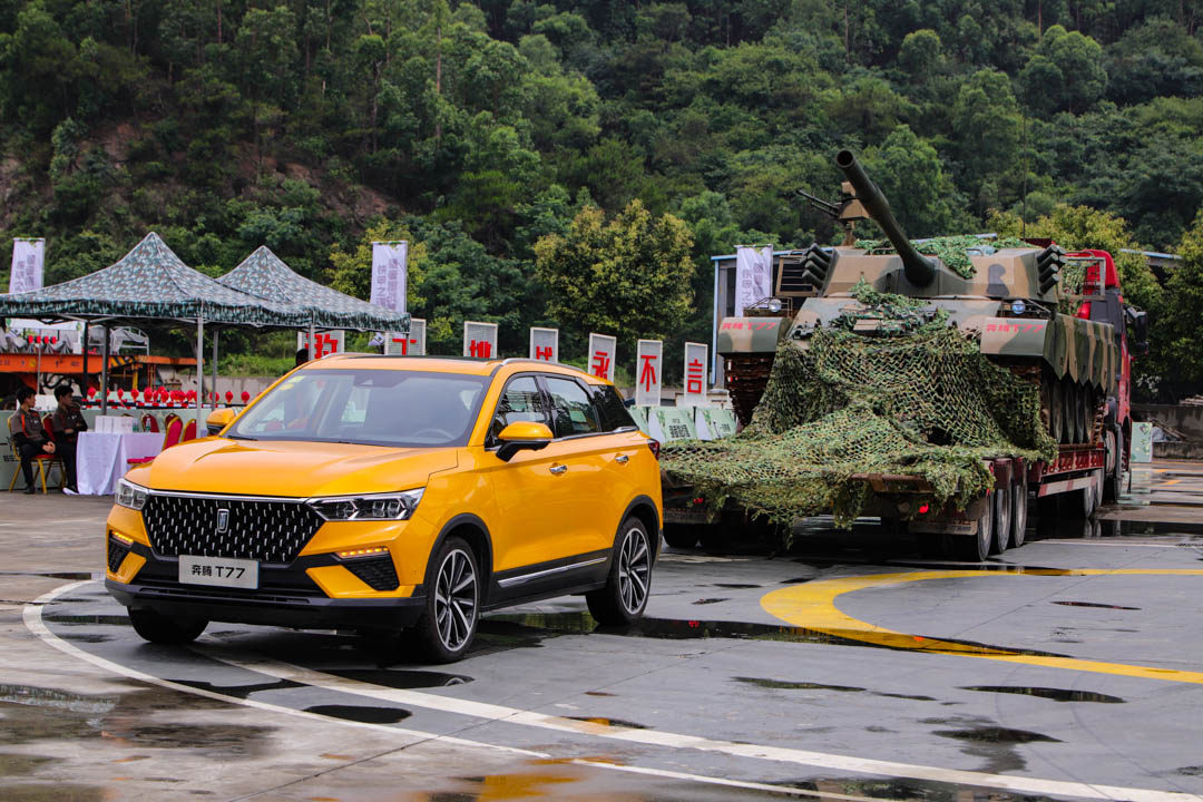 试驾正式开始前,奔腾在现场特别设置了T77与坦克开杠环节。完成这个充满创意的挑战需要强大的发动机扭矩,随着载着坦克的牵引车缓缓移动,奔腾T77证明了它的强悍实力。