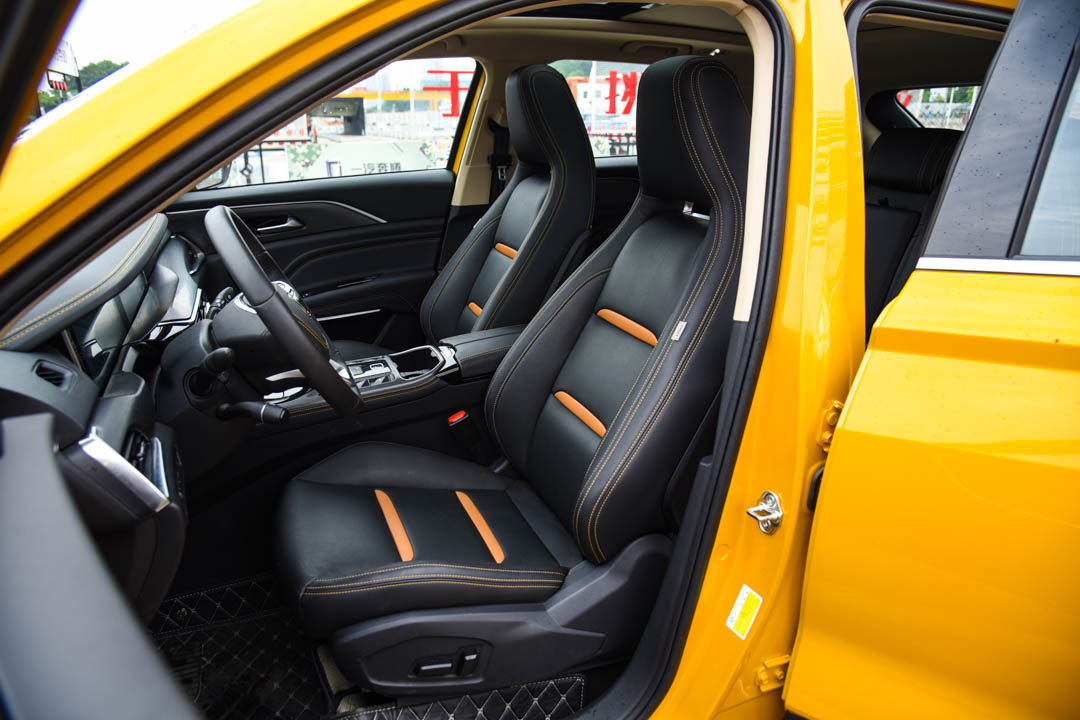 座椅采用了类似跑车的整体式设计,包裹性不错,并且主驾座椅支持6向电动调节和电加热功能。