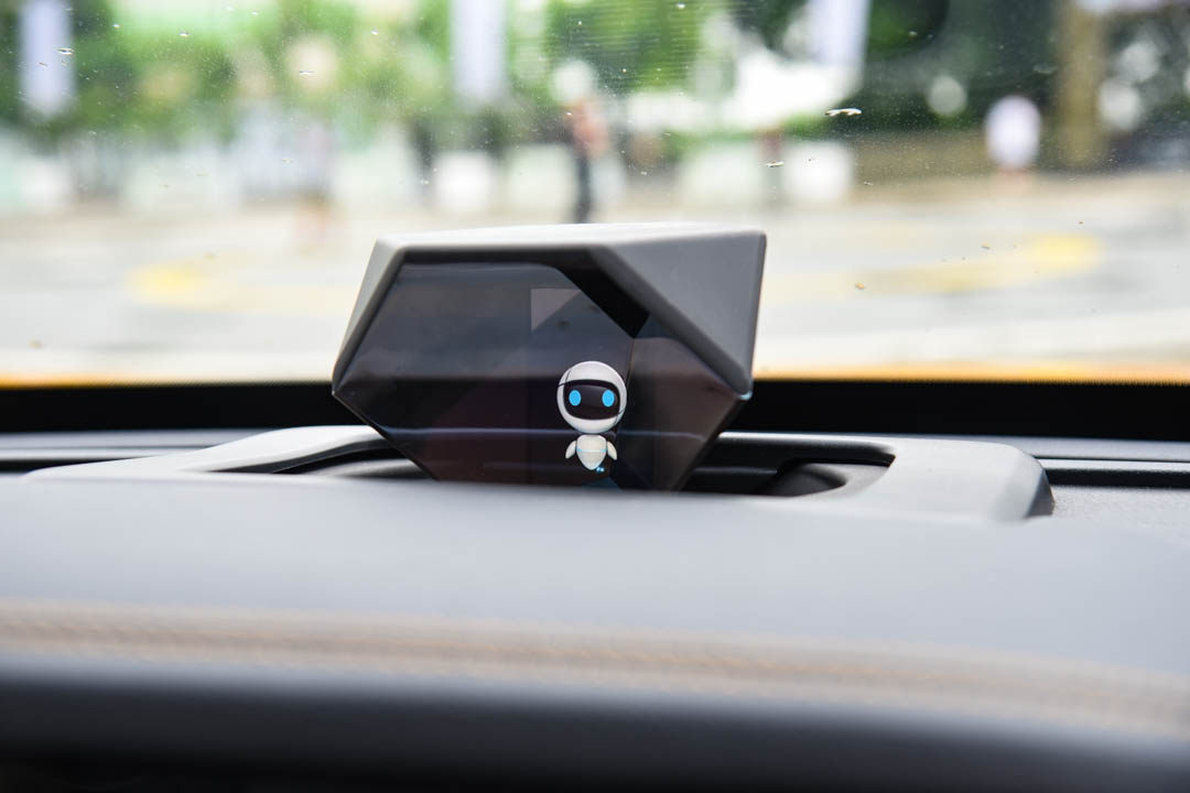 位于中控台上部的是一个全息影像装置,里面的3D动态人物是AI系统的表现终端,可以通过语音与驾驶员和乘客进行交互。总共有三种人物形象可供选择。