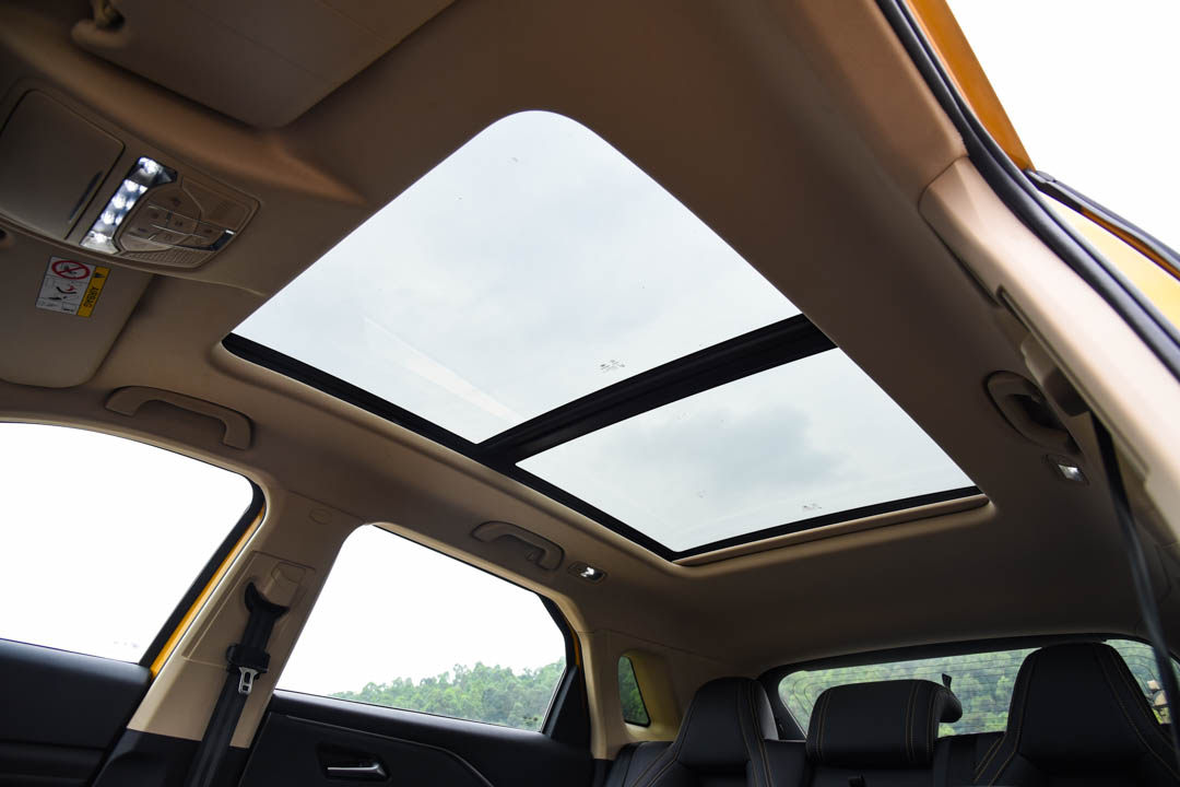 全景天窗的面积达1.12平方米,采光面积和开启面积都很可观。