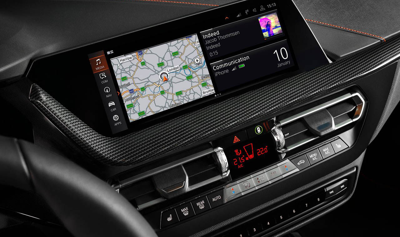 其中,智能钥匙这一方面,类似之前的新宝马3系一样,通过授权的手机,可以利用NFC近场传输技术来解锁车门等实际操作。10.25英寸中控触摸屏搭载了宝马最新的7.0 xDrive人机交互系统,并且带有手势控制等,可通过触屏、语音、旋钮控制、方向盘、手势等进行操作。除此之外,全新一代宝马1系在科技功能上还提供了驾驶辅助系统、自动辅助停车功能、智能个人助理等,科技感非常强烈。